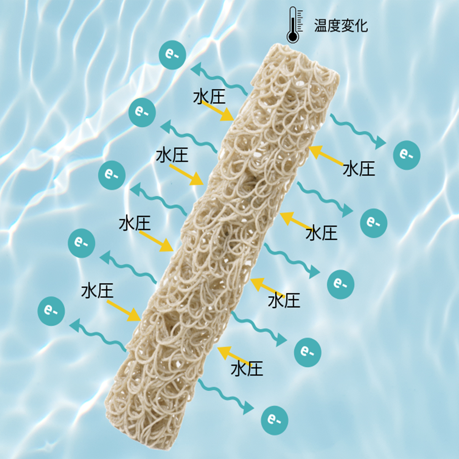 人にとって安全な触れてもビリビリと感じない微弱電流(マイクロカレント)が水圧や温度から発電をすることで水の状態を変化させることができます。